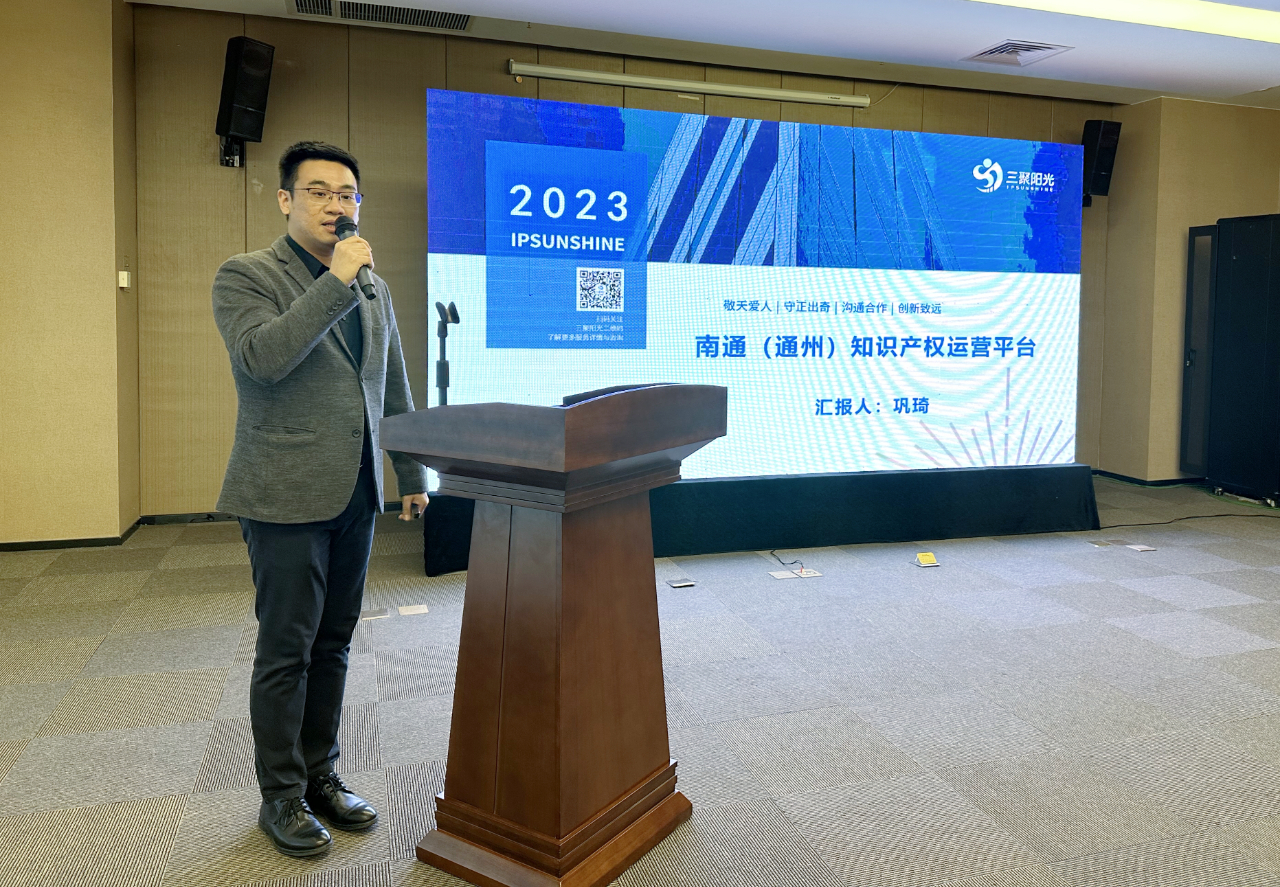 三聚陽光華東區(qū)總經(jīng)理鞏琦為大家介紹了南通(通州)知識(shí)產(chǎn)權(quán)運(yùn)營平臺(tái),細(xì)致講解了平臺(tái)成立的背景以及平臺(tái)的功能和使命。