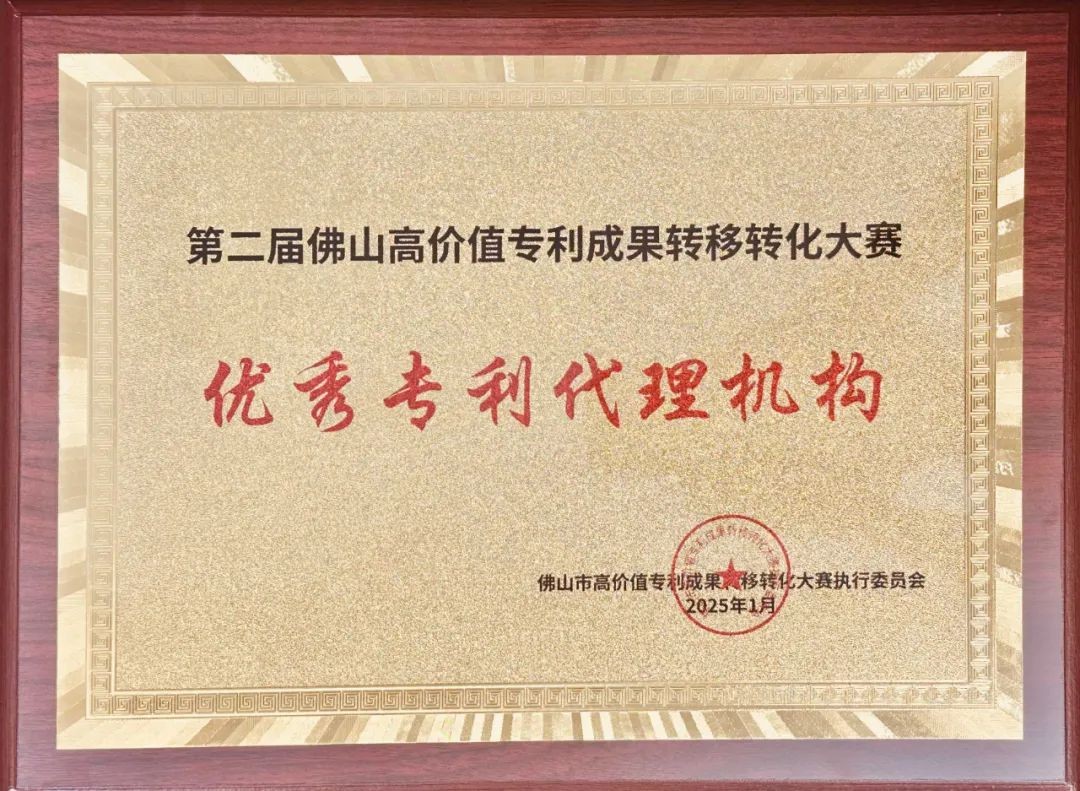 在第二屆佛山高價值專利成果轉(zhuǎn)移轉(zhuǎn)化大賽中,北京三聚陽光知識產(chǎn)權(quán)代理有限公司憑借在知識產(chǎn)權(quán)服務(wù)領(lǐng)域的專業(yè)表現(xiàn),榮獲大賽“優(yōu)秀專利代理機構(gòu)”獎項。