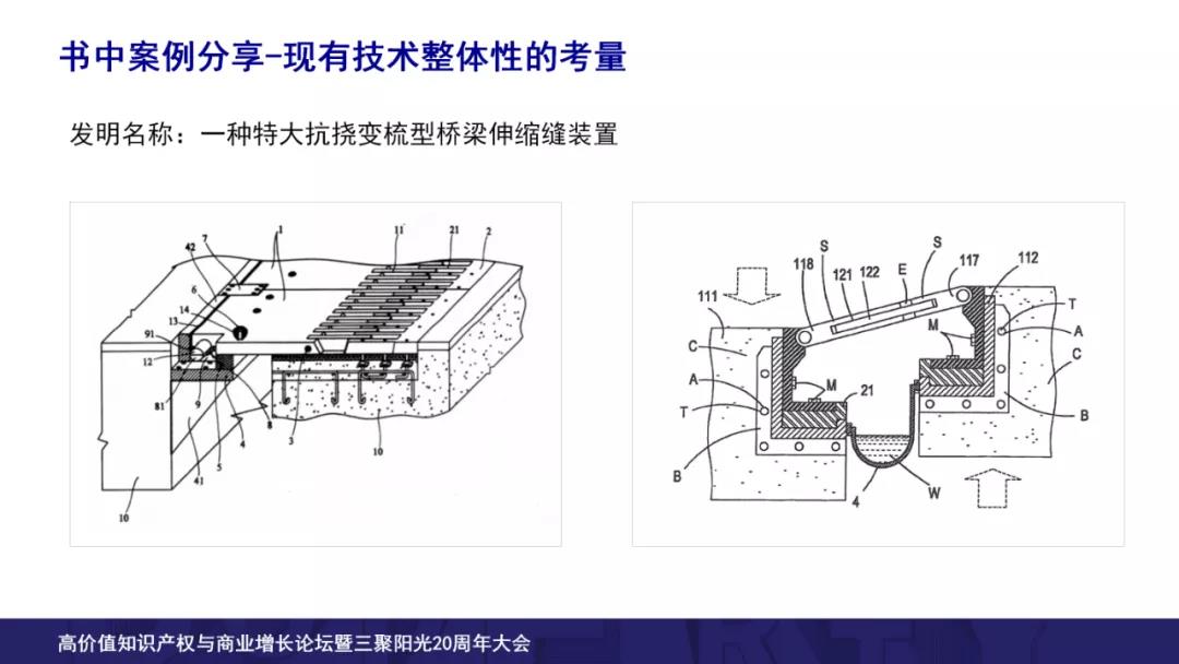 那么本書通過近十個案例層層剖析,向讀者解讀如何通過現(xiàn)有技術以及涉案專利不同的角度考慮整體性問題,我們來看港珠澳大橋的伸縮性專利的案例。
